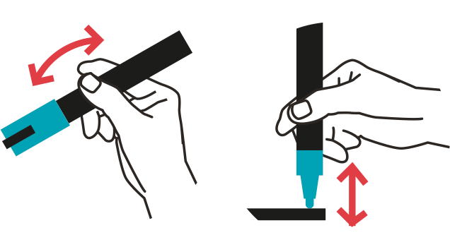1. Obsah důkladně protřepejte, vždy bezpečně s uzavřeným víčkem. 2. Několikrát zatlačte hrotem na čistý papír, dokud se zcela nenaplní barvou. 3. Je to velmi rychlé. Na porézních površích schne barva rychleji než na hladkých. 4. Popisovače POSCA můžete skladovat v jakékoli poloze, pokud precizně nasadíte víčko. Výjimku tvoří štětcový hrot, který by měl být skladován ve vodorovné poloze. |